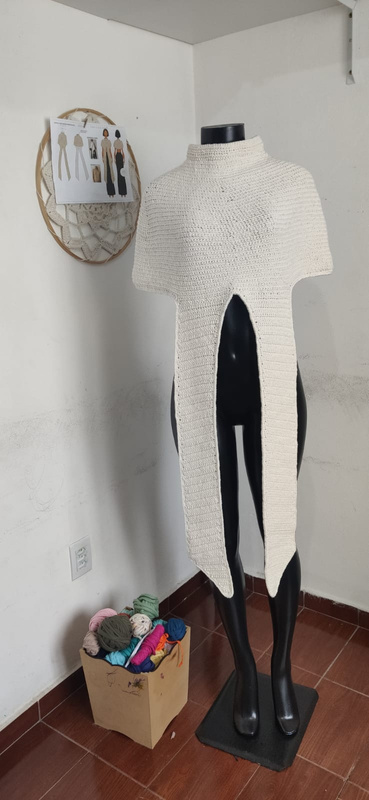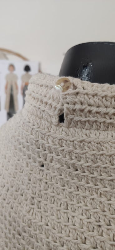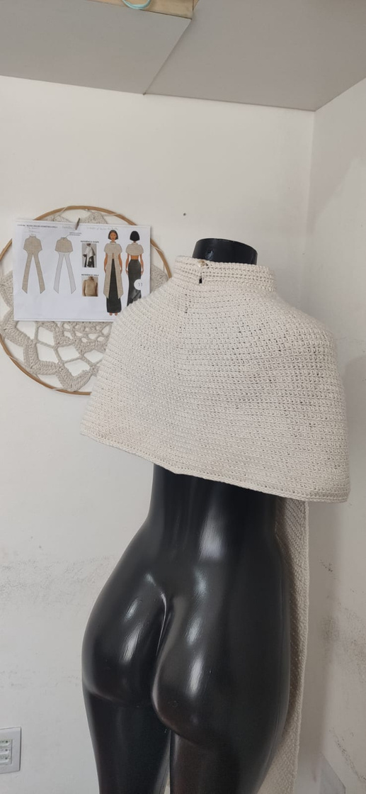 Cropped de Crochê, feito com fio ecológico, tex 295, Euroma FIORE. Modelo único e variação de cor na paleta com bege.